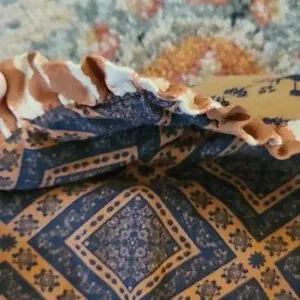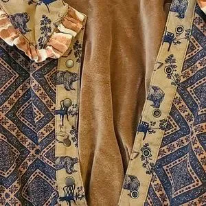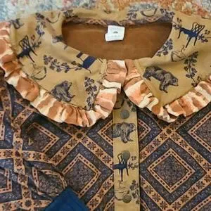 The cutest Kate Quinn Button up light jacket! Size is 6 year old, but my girl is quite small and just turned six... and sadly she has outgrown this. So I'd say ideal for 4-5 year old. We only wore this a handful of times, So excellent used condition. Crushed velvet is on entire coat, aside from blue cuffed arms. The arms are cute rolled up or flat. Very strong buttons. Cuffed waist and vintage looking collar. Fabric is just darling. Such a classic piece that I'd pack away for grandkids if we'd wore it more. Haha.