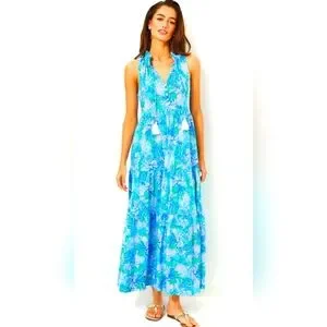 Lilly Pulitzer NWT Malone Maxi Dress Las Olas Aqua Strong Current Sea