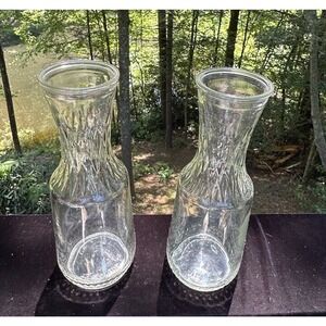 Anchor Hocking Milk Bottles Or Juice Carafe Clear Glass Containers Set of 2 -S32