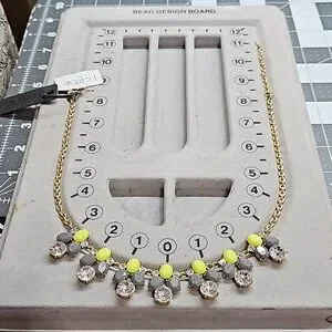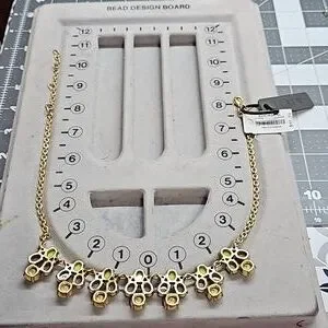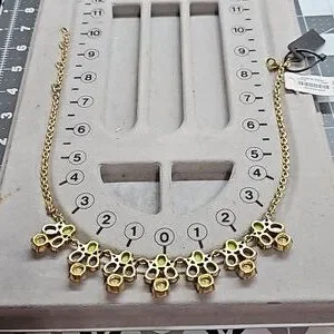 This necklace is new with tags. Her Goldtone metal finish is in great condition.