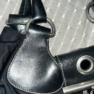 Overall good vintage preowned and preloved condition, scratches at leather, general wear throughout, part of the inner lining has been torn and repaired by hand stitch so now the bag is in good interior shape and otherwise no issues with the functionality of the bag. One of the metal rings in the front has a crack, but again doesn’t affect the functionality of the bag and is not very noticeable when buckled up. I would say overall condition is a 6.5/10. Very beautiful and not flashy Prada bag. A true staple, everyone needs a high quality black shoulder bag in their collection 💕