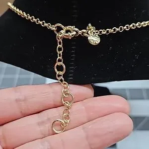 This necklace is preloved in great condition. Her goldtone finish looks great.