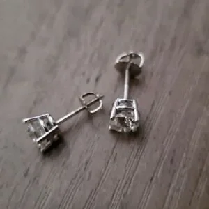 1.50 cttw 14k white gold NATURAL diamond round brilliant solitaire earrings … these are Preowned without receipt or certification. Brought into a jeweler for approximate color, clarity and value and he wrote this on the card. Screw back closures. Purchased at Kay’s jewelers.