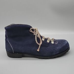 Very cool vintage hiking boots. Suede leather with Vibram sole. No size tag, but my wife is confident they are a size 9. See ruler pictures to compare your own. Suede shows minor wear in spots mostly on toes.