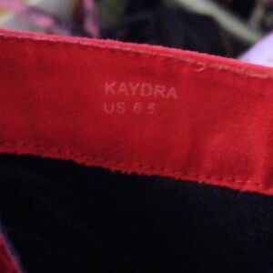 Cute Red heels 4" with platform, gold buckles on outer ankles! Snakeskin texture on heels and straps! Suede! Very comfortable, good used condition!