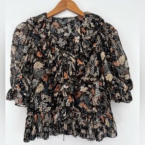 💐 Ulla Johnson Silk Ruby Blouse Night Garden 100% Silk Floral Sz 6 EUC