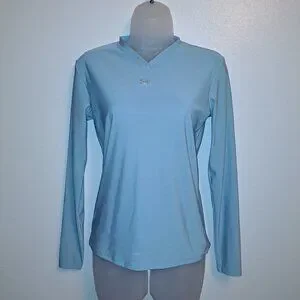 UnderArmour Baby Blue Blue Fitted Compression V-Neck Long Sleeve Athletic Shirt,size Large PreownedCondition 82%polyester 12%elastane***Measurements in pictures