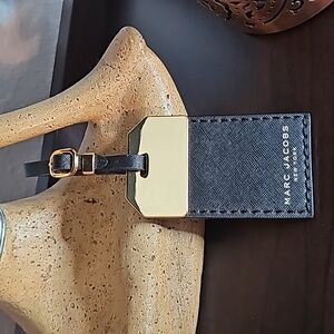 Marc Jacobs New York Black leather bag charm tag, 3.5 inches by 2 inches with adjustable strap. In excellent condition, no callouts. Beautiful charm tag is heavy with goldtone accent, and cross stitch grain black leather. Accessorize your handbag or luggage with this elegant luxurious piece. Ships from smoke-free and pet free home.