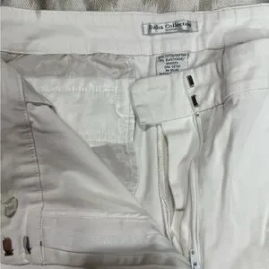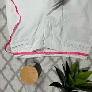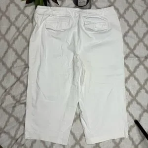 Women’s plus size white capris. Delilah collection. Size 16 women’s. Front pockets are sewn. Back pockets are functional with a flap. Light stretch. High waist. Zipper with two hook and eye closures. (There’s a discoloration on the front. I believe will come out with a wash.) Women’s white Capri plus size Delilah collection. LRS