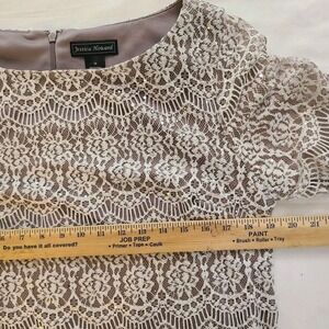 Jessica Howard Cream Beige Sequin Crochet Lace Overlay Lined Shift Dress Size 16