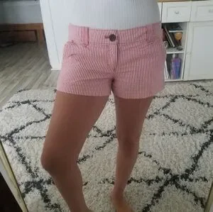Red railroad stripe shorts