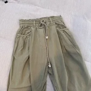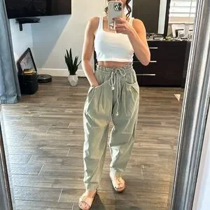 Free People high waist paper bag/ parachute pants. Olive green color size XS