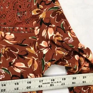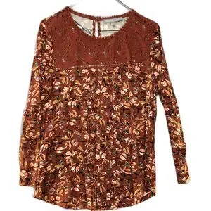 Anthropologie Daniel Rainn Darrel Crochet Yoke Knit Floral Print Top Petite M