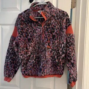 JoyLab *Purple & Coral* Animal Print | Half Zip Sherpa | XS | Pullover Fleece