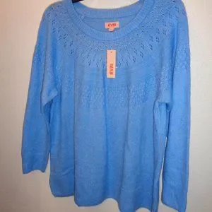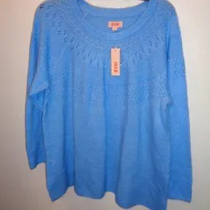 Up for sale is a Women's Plus Size EVRI Crewneck Pointelle Blue Sweater