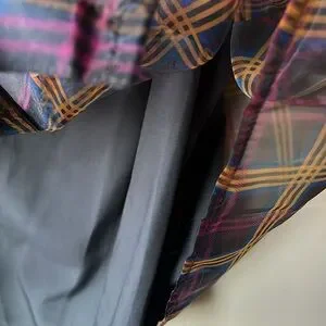 Smoky blue with fuchsia, blue and yellow check pattern.
