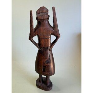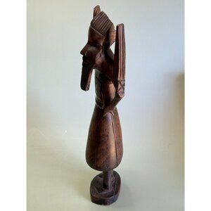 African Tribal Hand Carved Male Elder Winged Shoulder Ebony Wood Figurine Kenya