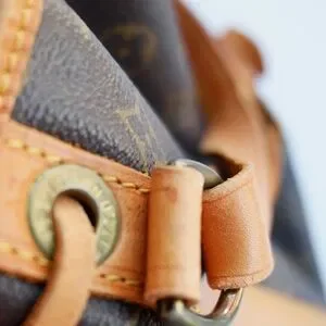 Condition: 7/10 Good Condition - Water marks on bottom. Signs of age on leather (patina) age on draw string and edge of top leather of bag. Clean interior.