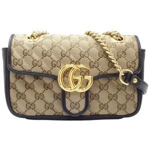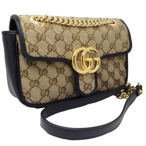 GUCCI Crossbody Mini Bag GG Marmont 446744 Shoulder Canvas Beige Black 450102