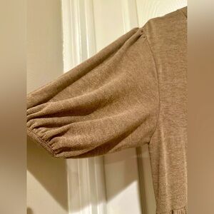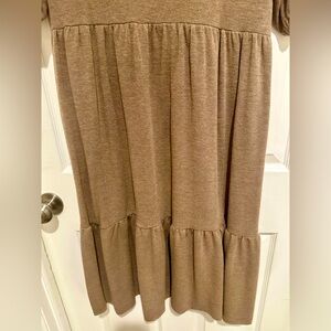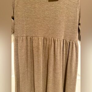Brand new never worn. Soft and cozy material. Short sleeve, elastic drop waist sweater dress. Light brown.