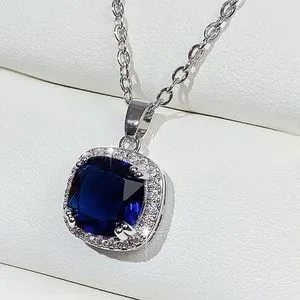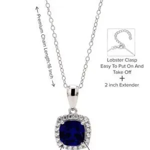💙 Cushion Cut Blue Sapphire Cz Diamond Halo Necklace