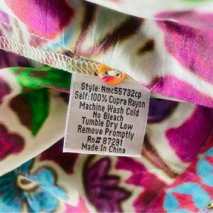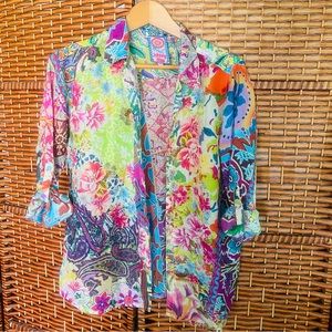 Johnny Was Floral Print Patchwork Cupra Rayon Button Down Blouse Tunic