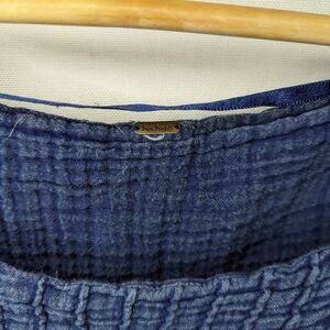 SOLDree People Sz M Oversized Navy Blue Destroyed Hem Short Sleeve Cropped Shirt