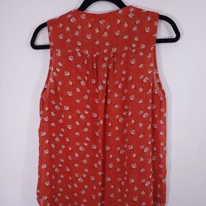 fun 2 fun Red floral sleeveless blouse with v neck and string tied closure.