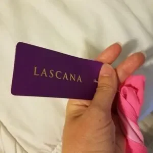 Hot pink lascana swim top. Multi blue straps. Adjustable. Size 6 (B cup). Never been worn. Tag still attached.