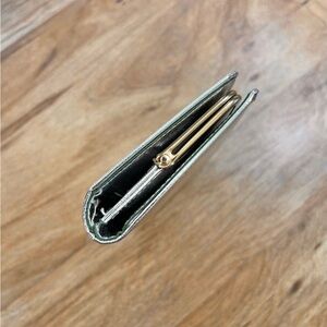 Love this! Super cute SHINY silver vinyl wallet in new condition. I’m pretty sure this has never been used! Circa 1960’s/70’s. Three compartments, two with dividers.