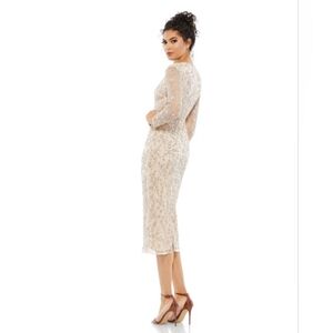 MAC DUGGAL BEADED TEA LENGTH DRESS W/ SHEER SLEEVES 10812