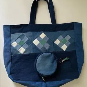 Handmade jean tote bag with matching coin pouch from recycled jeans. Msg me with any questions, ship’s within 1-2 business days, all sales are final.