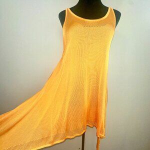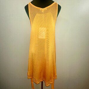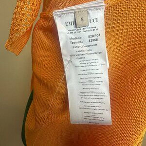 Emilio Pucci's draped stretch knit tank top SS19 in tangerine. This long tank features split sides with extra fabric cascading down the sides, made from stretch knit viscose with designed trim.