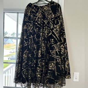 Making the Cut sequin cocktail maxi skirt. Fits medium and has elastic panels at the waist. On 5’ frame maxi…5’4” up a midi.