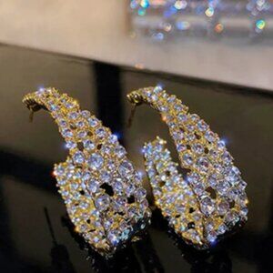 Brand new, never worn. Gold tone with rhinestones on front and back.