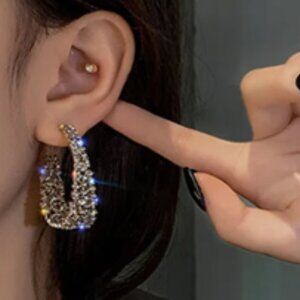 NEW Gold Plated Crystal Circle C Hoop Earrings