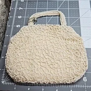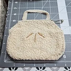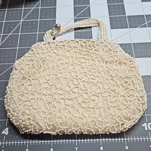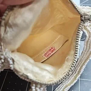 This evening bag is preloved in great condition. She features ornate beading and has a little pocket for her original mirror. She is so cute and would look great for a prom or wedding.
