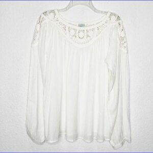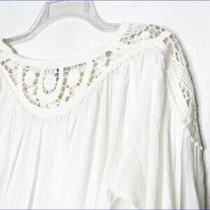 SUNDANCE Cotton Gauze Crochet Lace Boho Blouse - XL