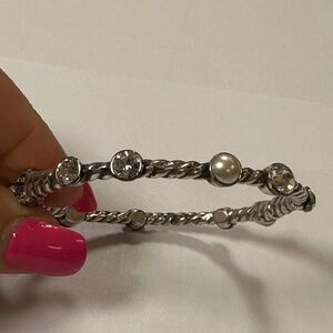 Brighton Monte Carlo Pearl and Clear Crystal Silver Plate Bracelet