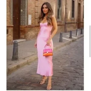 Zara Viral Slip Dress, Sold Out Pink Long Gown Size medium