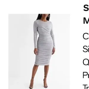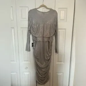 NWT Express Shine Crew Neck Rouched Midi Dress, silver, size xl