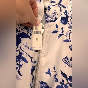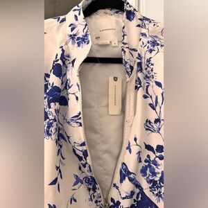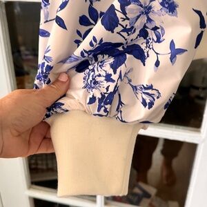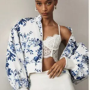 NWT Anthropologie Cropped Floral Print Bomber Jacket Color: BLUE MOTIF BLUE MOTI