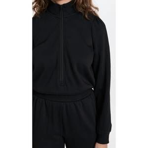 Fabric: Mid-weight fleece. Mock neck and partial-zip placket. Long puff sleeves with elastic cuffs. Ribbed edges. Slant hip pockets. Shell: 60% cotton/40% polyester. Wash cold. Imported, China. The model is a size 6 and is wearing a size small!