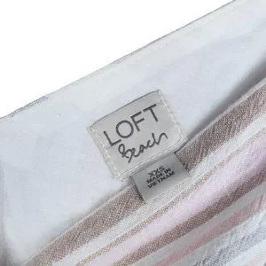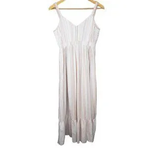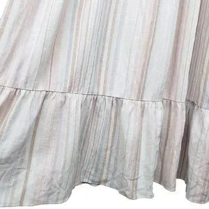 Loft Beach Cotton Linen Blend Striped Midi Dress Neutral Elasticized Waist XXS
