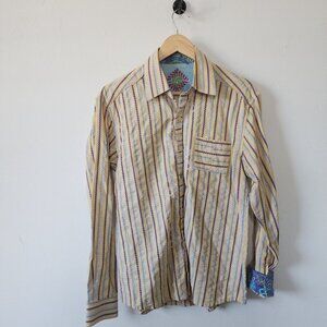 Robert Graham Mens Medium Yellow Button Down Shirt Flip Cuff