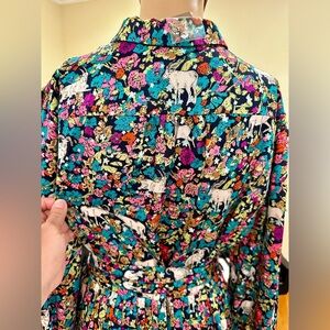 -love this dress and pattern, it’s so fun and whimsical, material is very soft, looks like an expensive high end dress