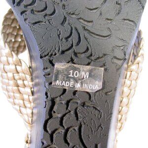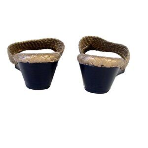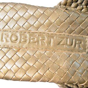 ROBERT ZUR Tamara $250 Woven Gold Leather Wedge Slide Sandals Women's 10 - NWOB
