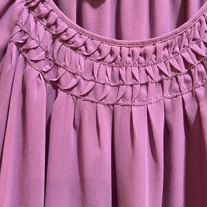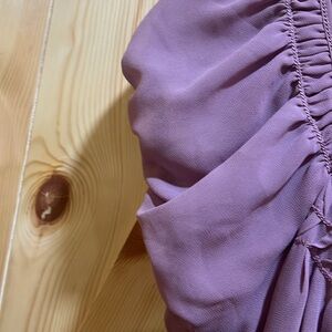 Sophie max ladies top 100 percent polyester size small color is grape colored version of purple detailed gathered in the front sleeves