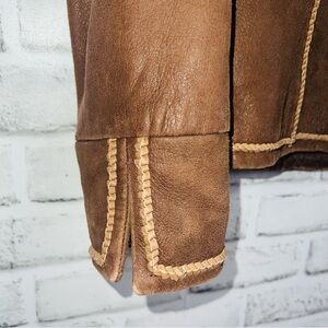 Reba Size Small Soft Leather jacket Brown Tooled Braided Stitching Full Zip