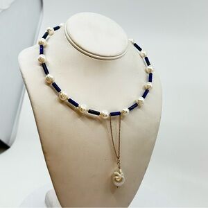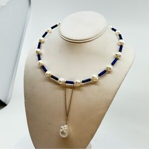 Handcrafted with care, this choker features lustrous natural freshwater pearls alternating with deep blue natural lapis lazuli beads.